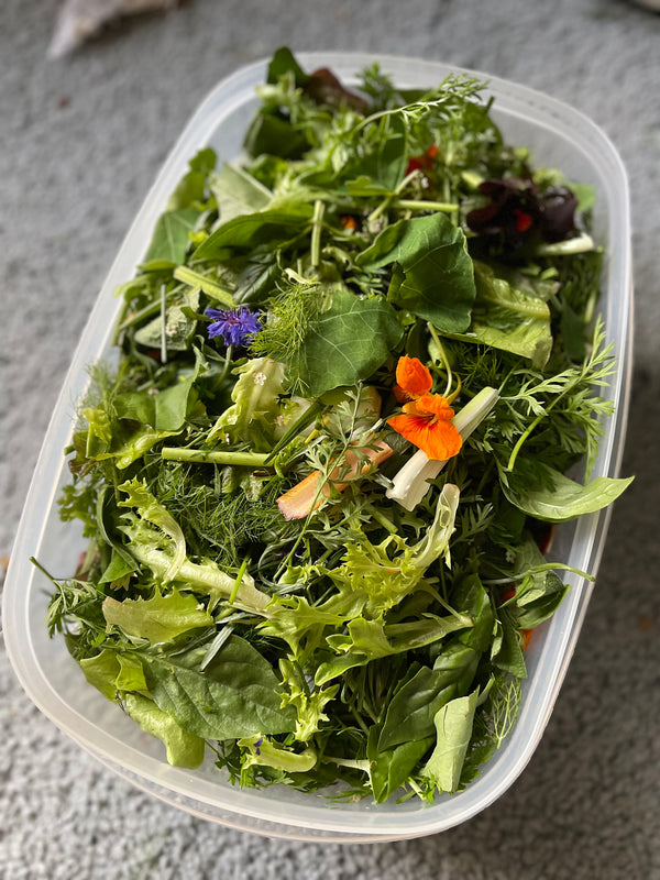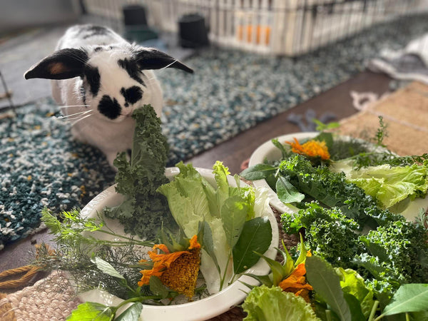 Our weekly bags are packed with pesticide-free, Certified Naturally Grown greens, herbs, and edible flowers—handpicked to be 100% safe and delicious for your bunny.