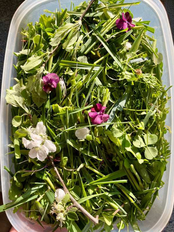 - 2-3 bundles of herbs (like dill, parsley, comfrey, basil, cilantro, clover, etc.)