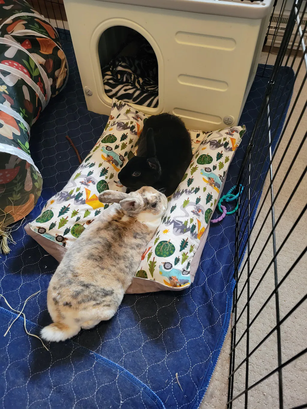 Such a cozy bed, my holland lop enjoys laying down on it and taking a snooze. Great quality and shipped fast!
