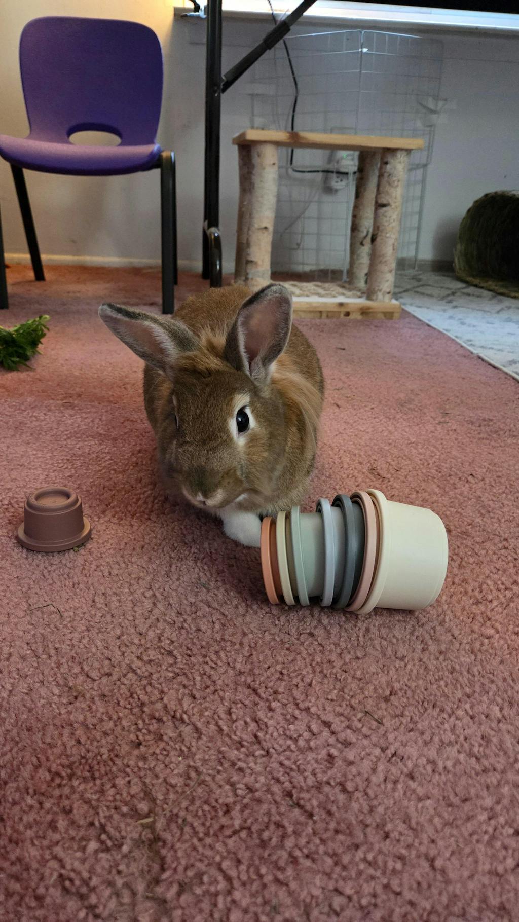 My 8 year old rabbit loves these. I put a few pellets in each cup & let her take her aggression out on them. LOL. Good for her mental health !
